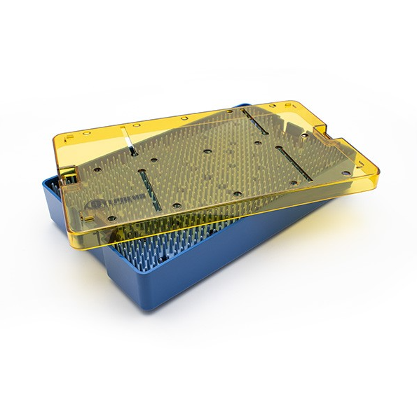 Tacka do sterylizacji dwuwarstwowa z pokrywą – system zabezpieczający narzędzia podczas mycia i sterylizacji.
